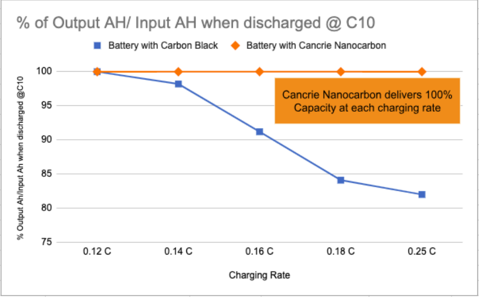 | Charging Rate | Battery with Carbon Black | Battery with Cancrie Nanocarbon |